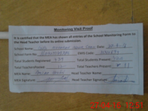 | Attendance Register | Head Teacher | MEA with School | Visit Proof |