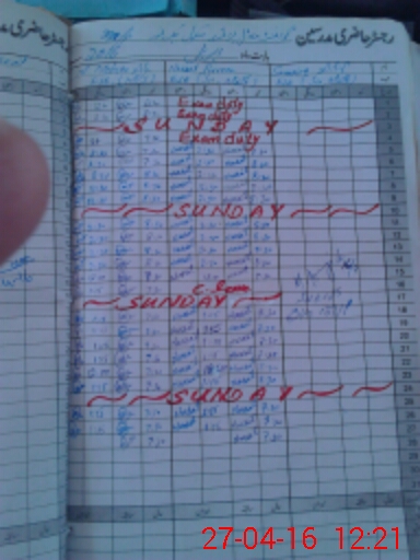 | CNIC | Full Name | Designation | R/C | Absence During Last Calender Month |