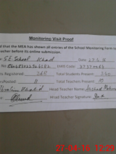 | Attendance Register | Head Teacher | MEA with School | Visit Proof |