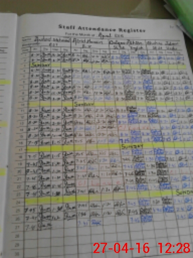 | CNIC | Full Name | Designation | R/C | Absence During Last Calender Month |