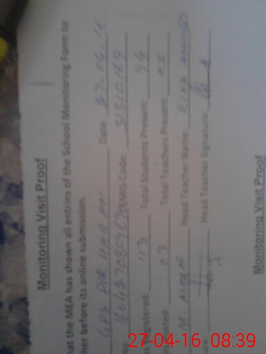 | Attendance Register | Head Teacher | MEA with School | Visit Proof |