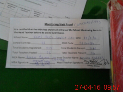 | Attendance Register | Head Teacher | MEA with School | Visit Proof |