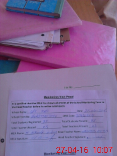 | Attendance Register | Head Teacher | MEA with School | Visit Proof |