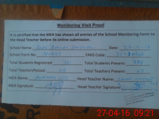 | Certified that this School was Inspected by the Undersigned MEA/DMO Today and the Information Stated Above is as Per Record. | |||||