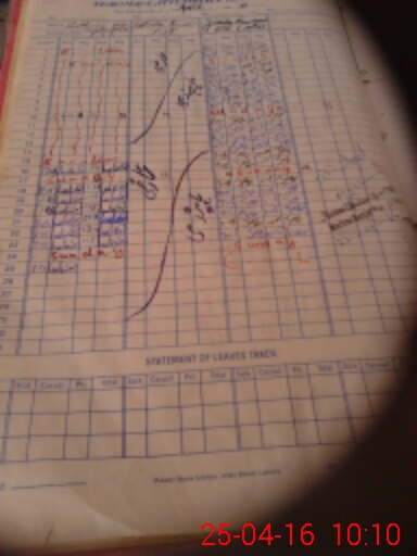 | CNIC | Full Name | Designation | R/C | Absence During Last Calender Month |