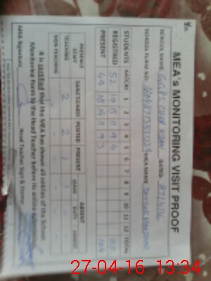 | Attendance Register | Head Teacher | MEA with School | Visit Proof |