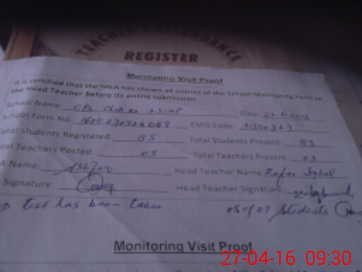 | Attendance Register | Head Teacher | MEA with School | Visit Proof |