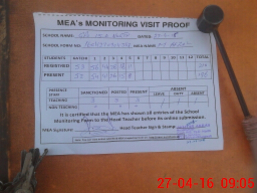 | Attendance Register | Head Teacher | MEA with School | Visit Proof |
