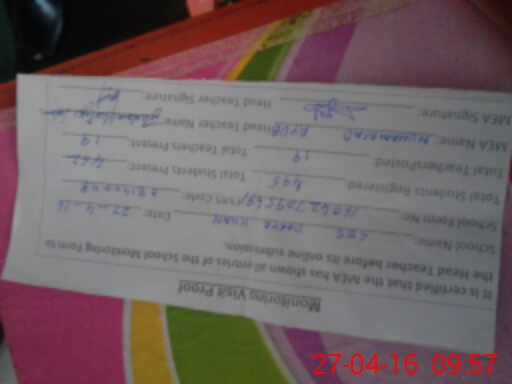 | Attendance Register | Head Teacher | MEA with School | Visit Proof |