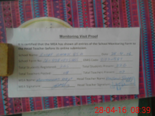 | Certified that this School was Inspected by the Undersigned MEA/DMO Today and the Information Stated Above is as Per Record. | |||||