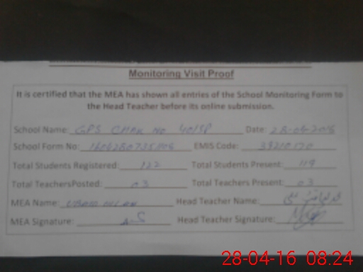 | Certified that this School was Inspected by the Undersigned MEA/DMO Today and the Information Stated Above is as Per Record. | |||||