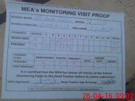 | Attendance Register | Head Teacher | MEA with School | Visit Proof |