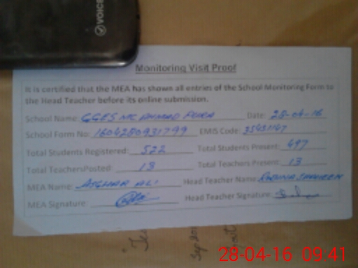 | Certified that this School was Inspected by the Undersigned MEA/DMO Today and the Information Stated Above is as Per Record. | |||||