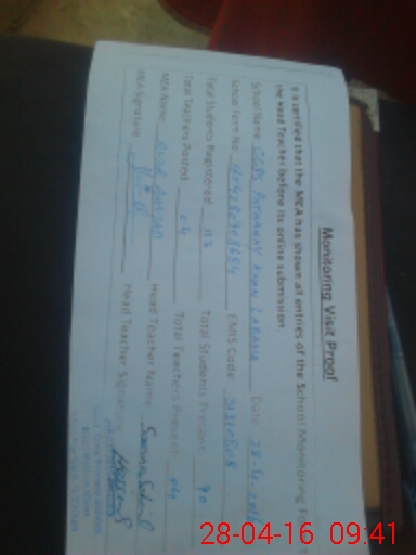| Attendance Register | Head Teacher | MEA with School | Visit Proof |