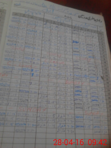| CNIC | Full Name | Designation | R/C | Absence During Last Calender Month |