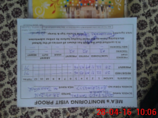 | Monitoring Date: 28-04-2016 | Start Time: 28-04-2016 09:15 AM | End Time: 28-04-2016 10:10 AM | Name of MEA: Mu**** Ja**** | |