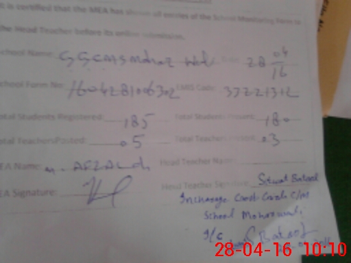 | EMIS Code: 33221312 | Name of School: GGCMS MOHAR WALI | |||