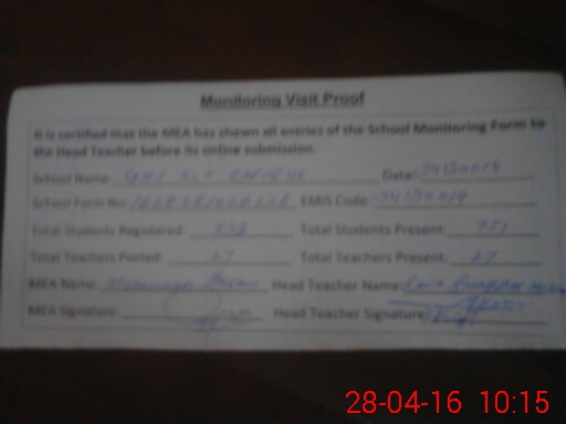 | Attendance Register | Head Teacher | MEA with School | Visit Proof |