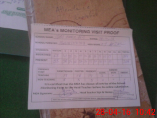| Attendance Register | Head Teacher | MEA with School | Visit Proof |