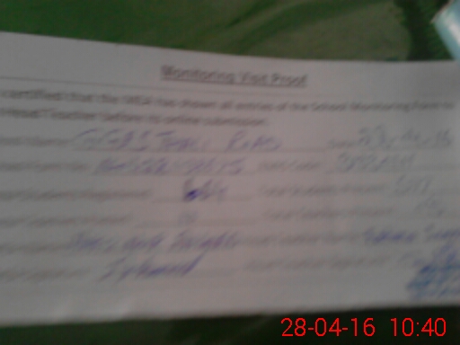 | Monitoring Date: 28-04-2016 | Start Time: 28-04-2016 09:49 AM | End Time: 28-04-2016 10:45 AM | Name of MEA: Mu**** Ah**** | |