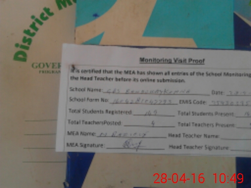 | Certified that this School was Inspected by the Undersigned MEA/DMO Today and the Information Stated Above is as Per Record. | |||||