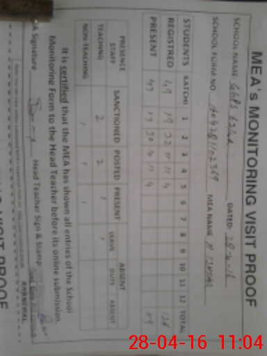 | Attendance Register | Head Teacher | MEA with School | Visit Proof |