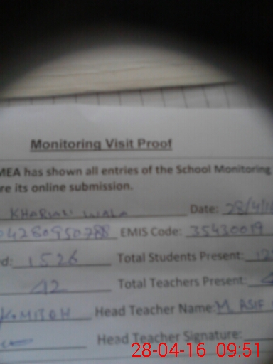 | EMIS Code: 35430019 | Name of School: GHS KHARIAN WALA | |||
