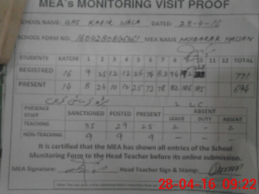 | Certified that this School was Inspected by the Undersigned MEA/DMO Today and the Information Stated Above is as Per Record. | |||||