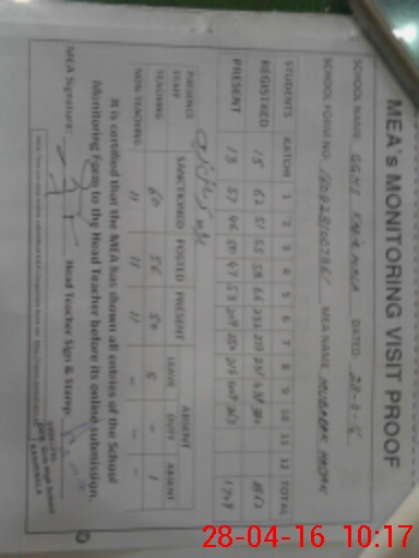 | Certified that this School was Inspected by the Undersigned MEA/DMO Today and the Information Stated Above is as Per Record. | |||||