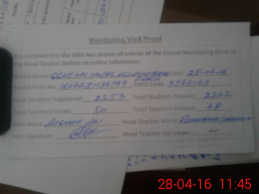 | Certified that this School was Inspected by the Undersigned MEA/DMO Today and the Information Stated Above is as Per Record. | |||||