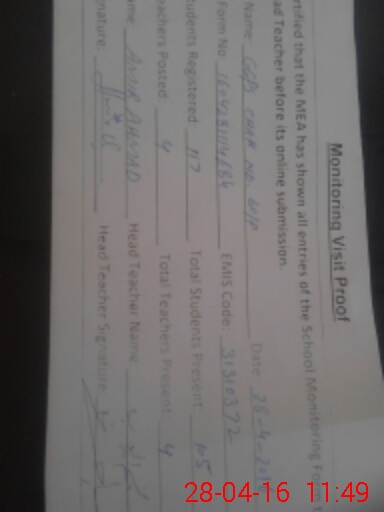 | Certified that this School was Inspected by the Undersigned MEA/DMO Today and the Information Stated Above is as Per Record. | |||||