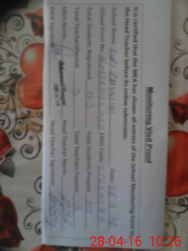 | Certified that this School was Inspected by the Undersigned MEA/DMO Today and the Information Stated Above is as Per Record. | |||||