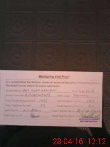 | Certified that this School was Inspected by the Undersigned MEA/DMO Today and the Information Stated Above is as Per Record. | |||||