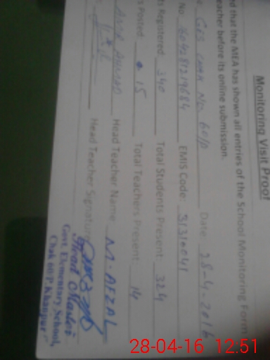 | EMIS Code: 31310041 | Name of School: GHS CHAK NO. 60/P KHANPUR | |||