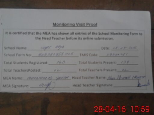 | Certified that this School was Inspected by the Undersigned MEA/DMO Today and the Information Stated Above is as Per Record. | |||||