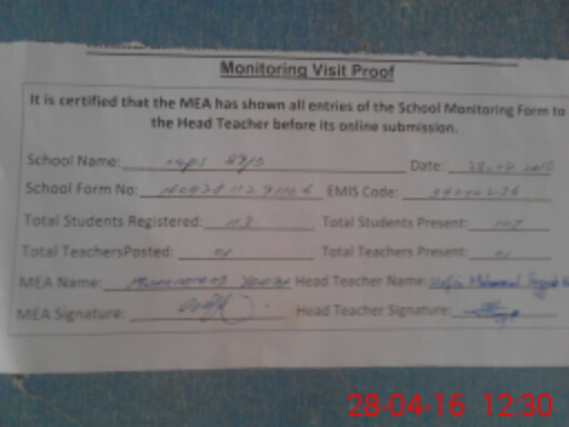 | Certified that this School was Inspected by the Undersigned MEA/DMO Today and the Information Stated Above is as Per Record. | |||||