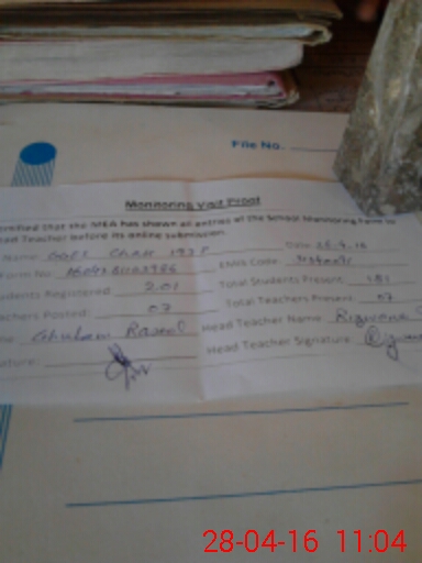 | Attendance Register | Head Teacher | MEA with School | Visit Proof |