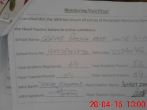 | Attendance Register | Head Teacher | MEA with School | Visit Proof |