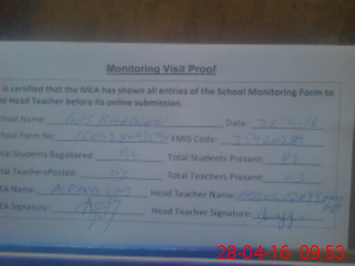 | Certified that this School was Inspected by the Undersigned MEA/DMO Today and the Information Stated Above is as Per Record. | |||||