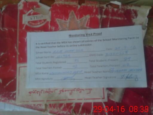 | Attendance Register | Head Teacher | MEA with School | Visit Proof |