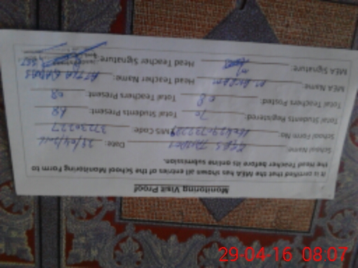 | Attendance Register | Head Teacher | MEA with School | Visit Proof |