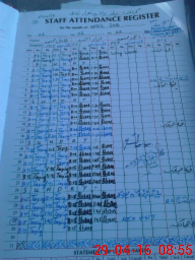 | CNIC | Full Name | Designation | R/C | Absence During Last Calender Month |