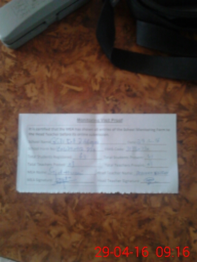 | Attendance Register | Head Teacher | MEA with School | Visit Proof |