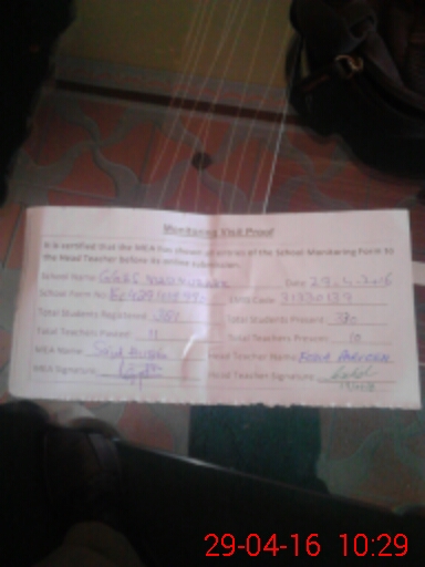 | Certified that this School was Inspected by the Undersigned MEA/DMO Today and the Information Stated Above is as Per Record. | |||||