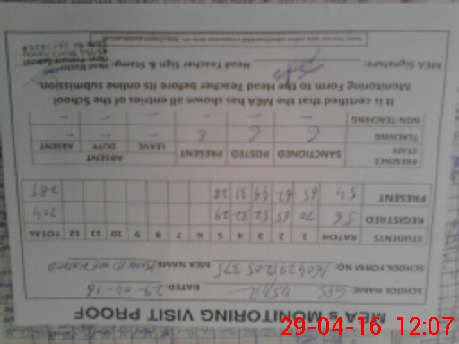 | Attendance Register | Head Teacher | MEA with School | Visit Proof |