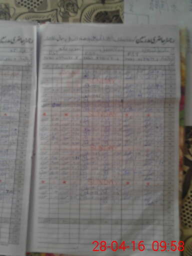 | CNIC | Full Name | Designation | R/C | Absence During Last Calender Month |