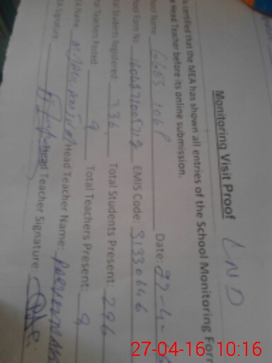 | Attendance Register | Head Teacher | MEA with School | Visit Proof |