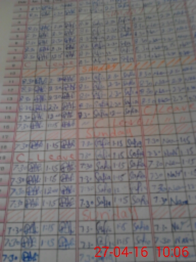 | Leave | Duty | Absent | Maternity | Medical | Ex- Pak |