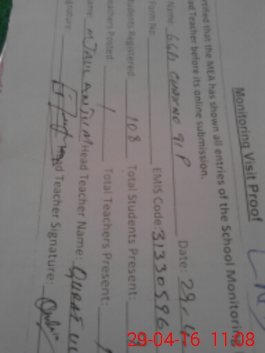 | Attendance Register | Head Teacher | MEA with School | Visit Proof |
