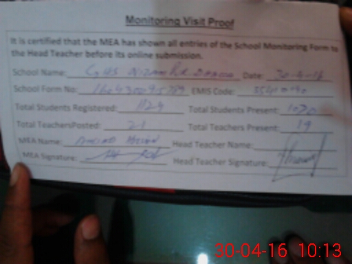 | Certified that this School was Inspected by the Undersigned MEA/DMO Today and the Information Stated Above is as Per Record. | |||||